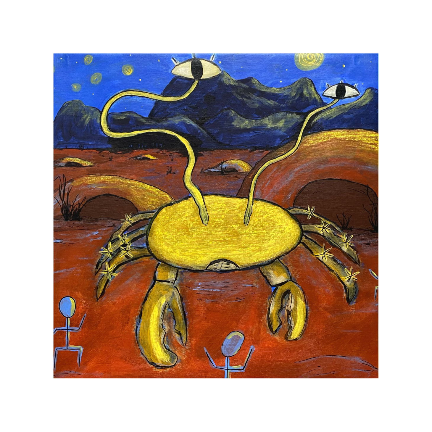 Pour cette oeuvre, je me suis inspiré de Pâque en Martinique. Traditionnellement, on chasse les crabes de terre et on les mange en colombo avec du riz.